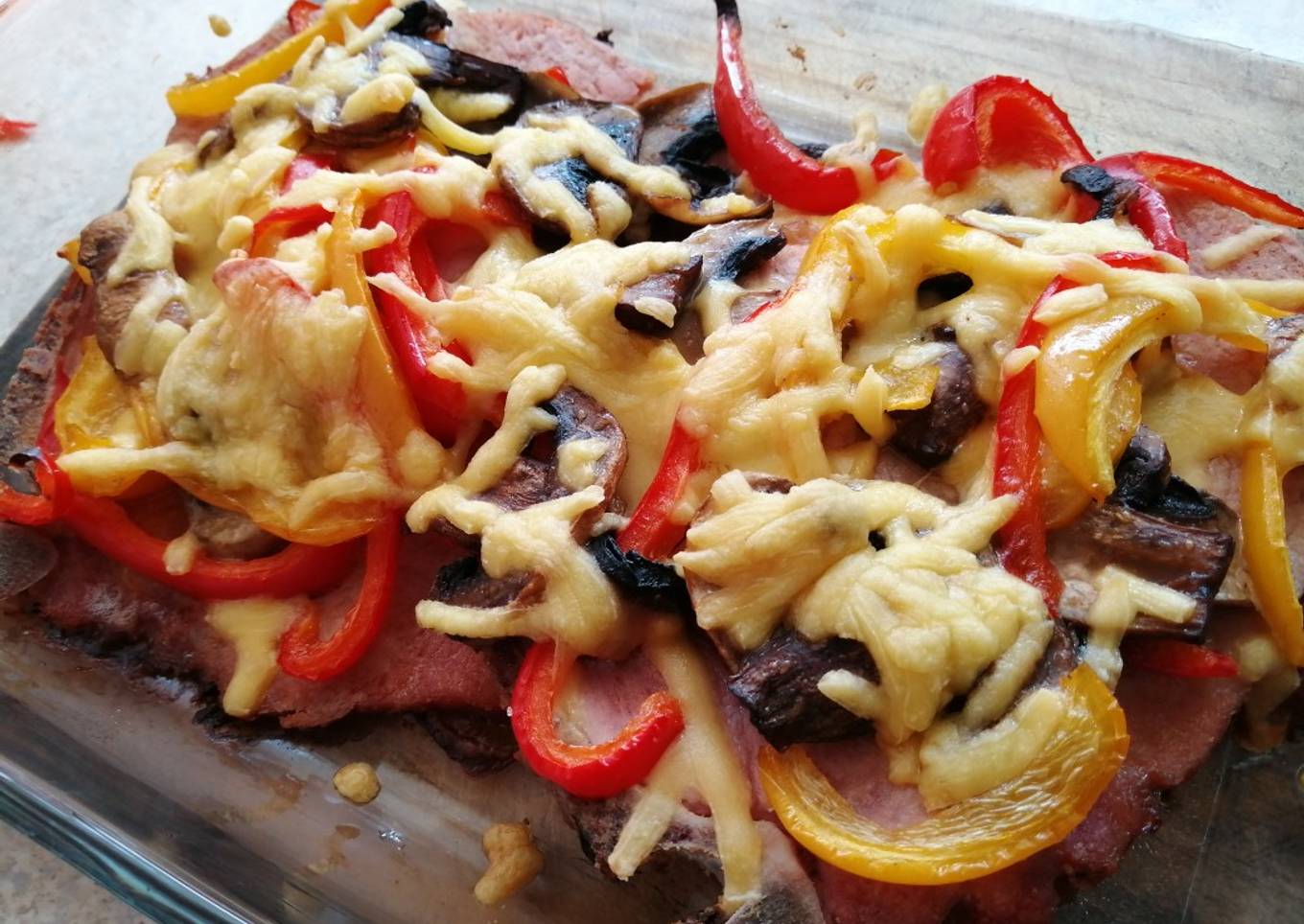 - Embarrar con mantequilla un refractario, colocar las chuletas, enseguida los champiñones con los pimientos y al final el queso manchego. Meter al horno por 30 minutos aproximadamente a 180° C.
