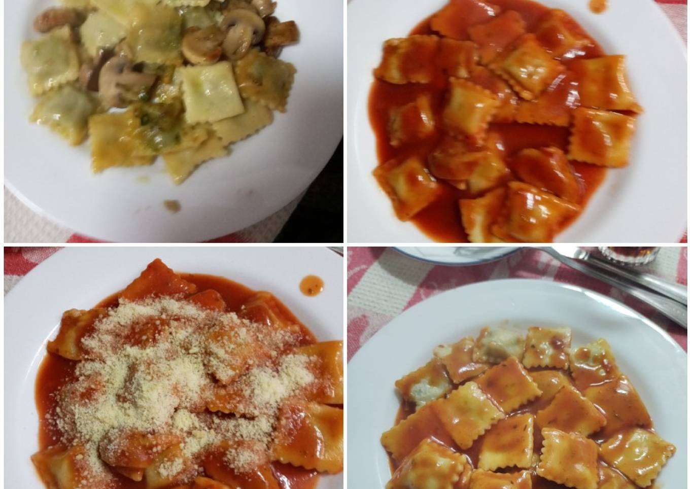 Ravioles caseros con espinaca y champiñones
