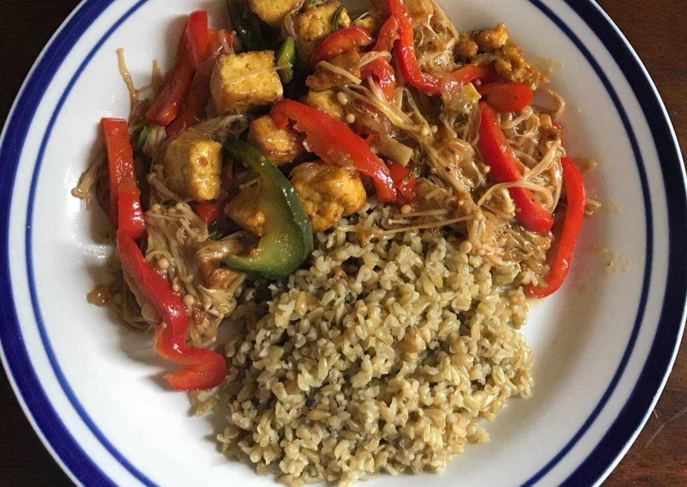 Enoki y Tofu con pimientos