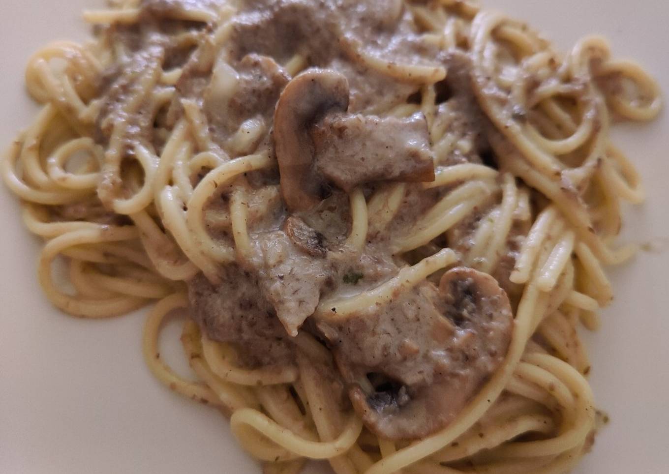 Espaguetis con salsa de champiñones