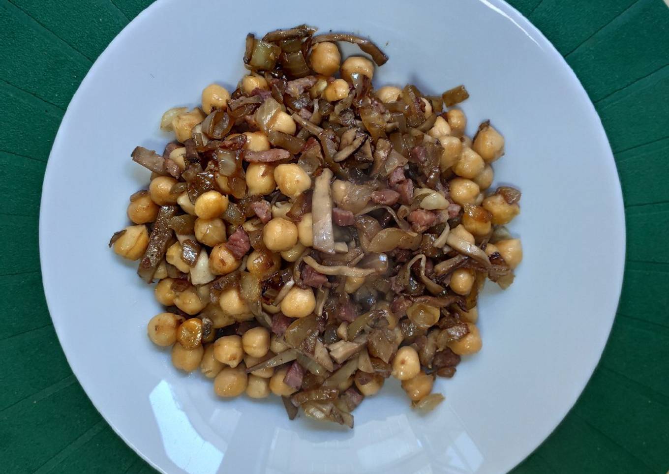 Garbanzos con jamón y champiñones
