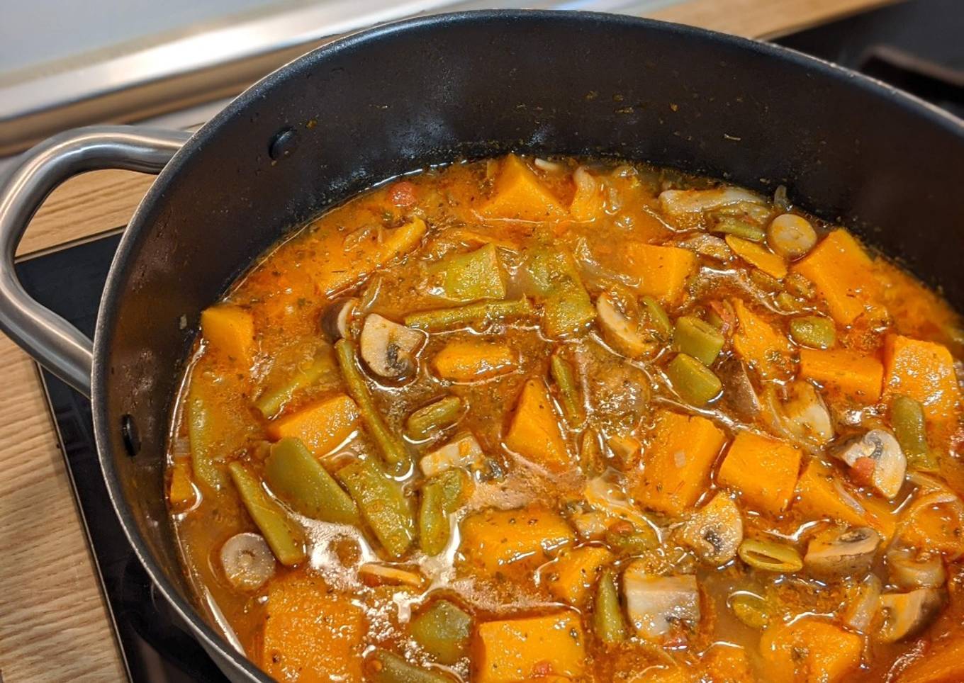Instructions to make to make Calabaza con champiñones y judías verdes