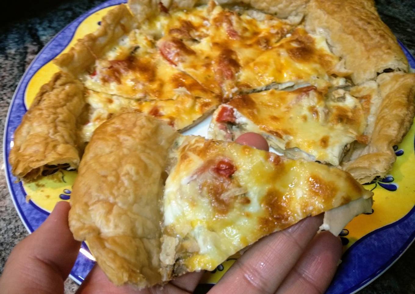 Pizza de hojaldre con champiñones y tomate