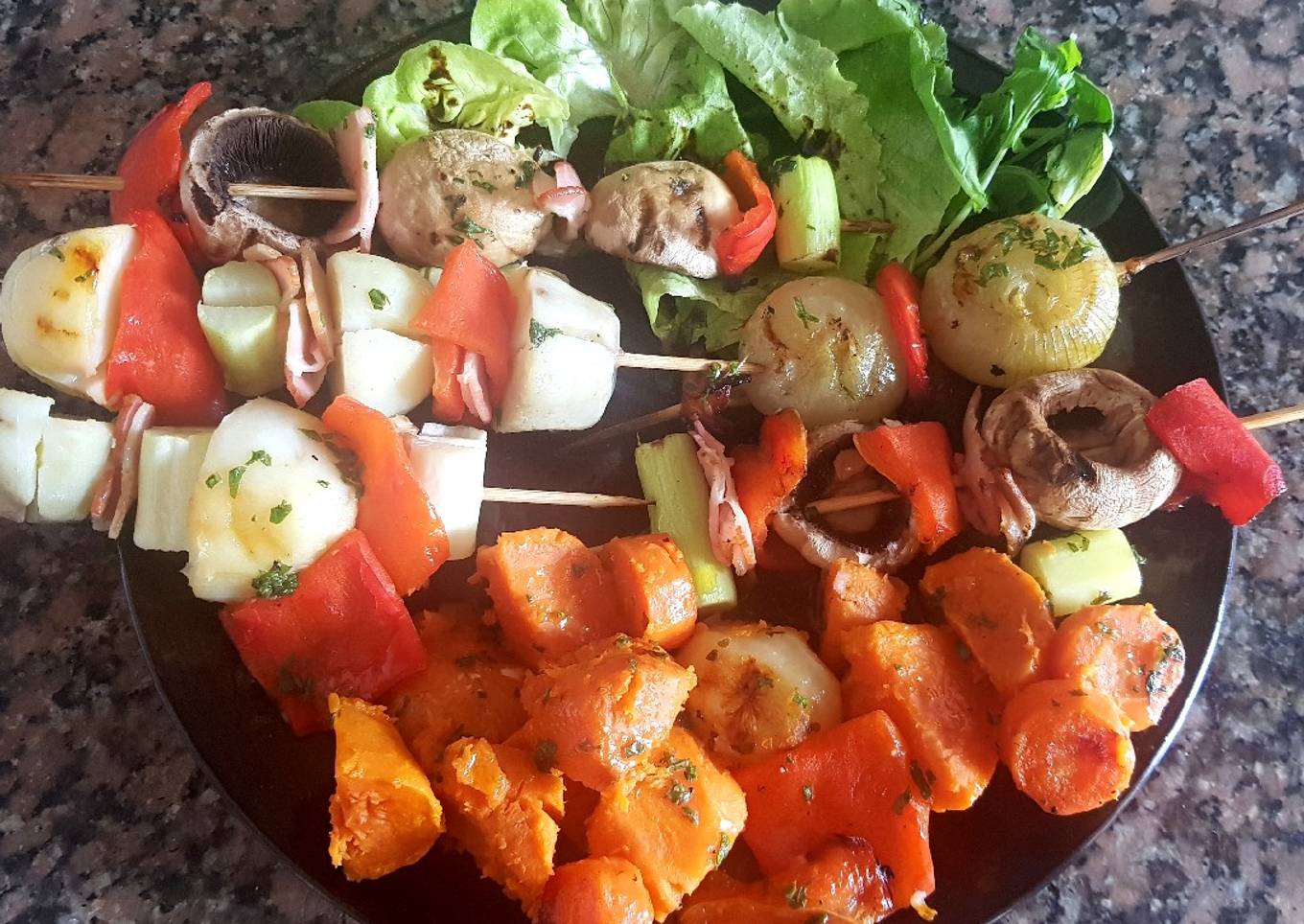 Brochetas de champiñones y verduras asadas #recetariocamino