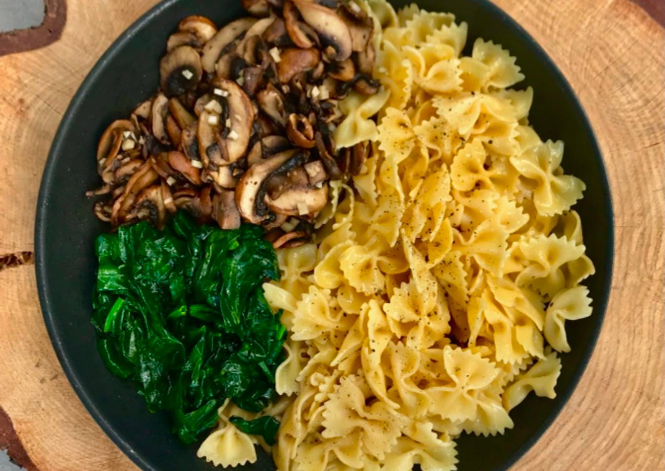 Farfalle con champiñones, espinacas y parmesano