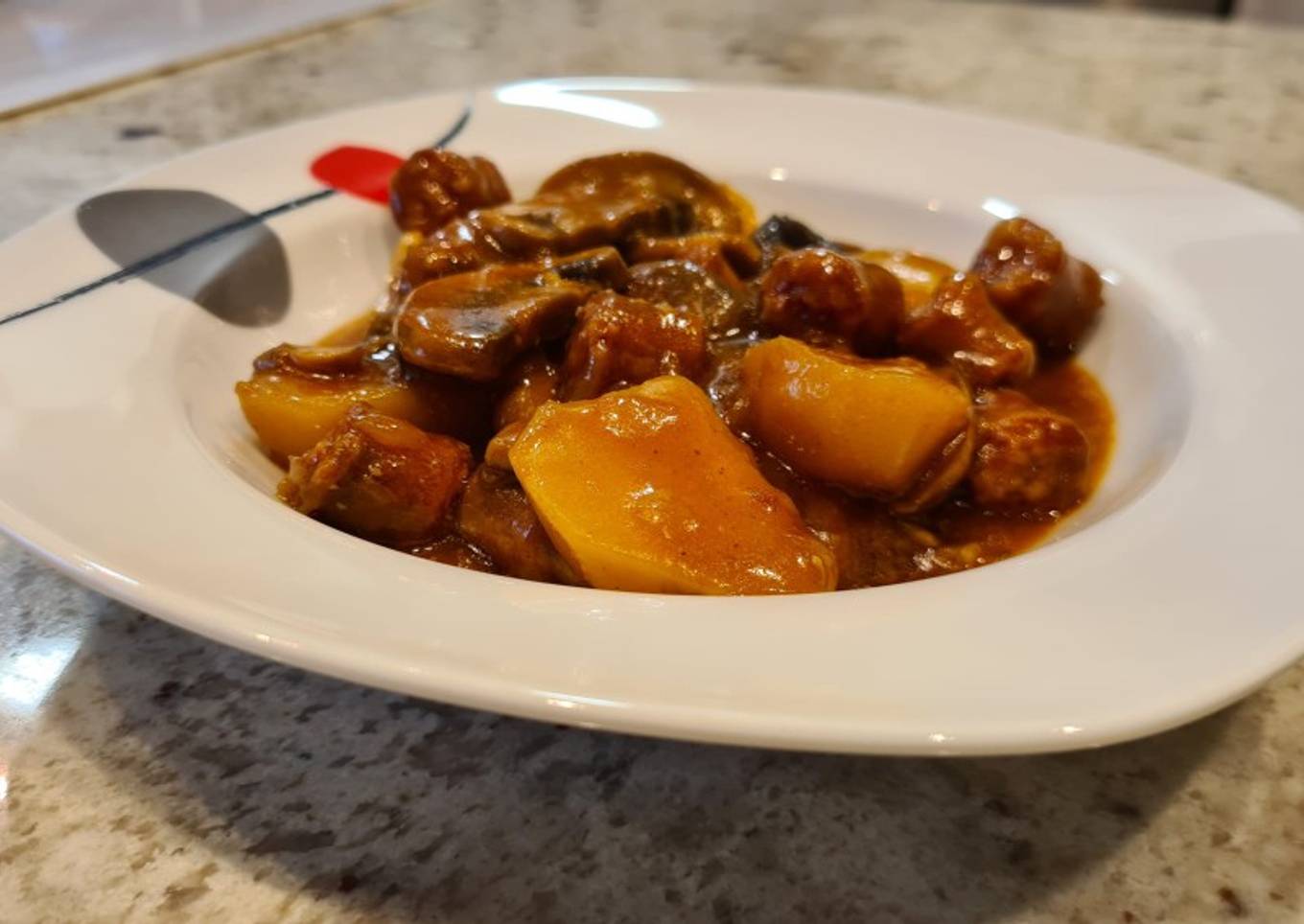 As for the number of servings that can be served to make Guiso de patatas con champiñones y chistorra is 2 raciones. So make sure this portion is enough to serve for yourself and your beloved family.